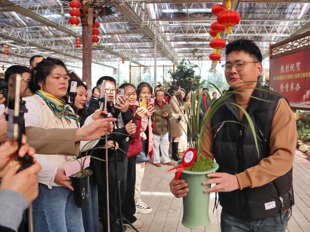寒蘭吐蕊迎賓客,國香漫溢暖紅土。11月28日,2025連城寒蘭節暨第八屆寒蘭精品展在“中國蘭花名鎮”朋口鎮的連城蘭花博覽園舉辦。為期兩天的展會以“紅土蘭韻,國香傾城”為主題,薈萃500盆寒蘭精品和數萬株商品蘭,吸引1000多名來自全國各地的蘭花專家、客商、種植戶及蘭友齊聚連城,共赴這場集文化傳承、產業交流、文旅融合于一體的蘭花盛宴。